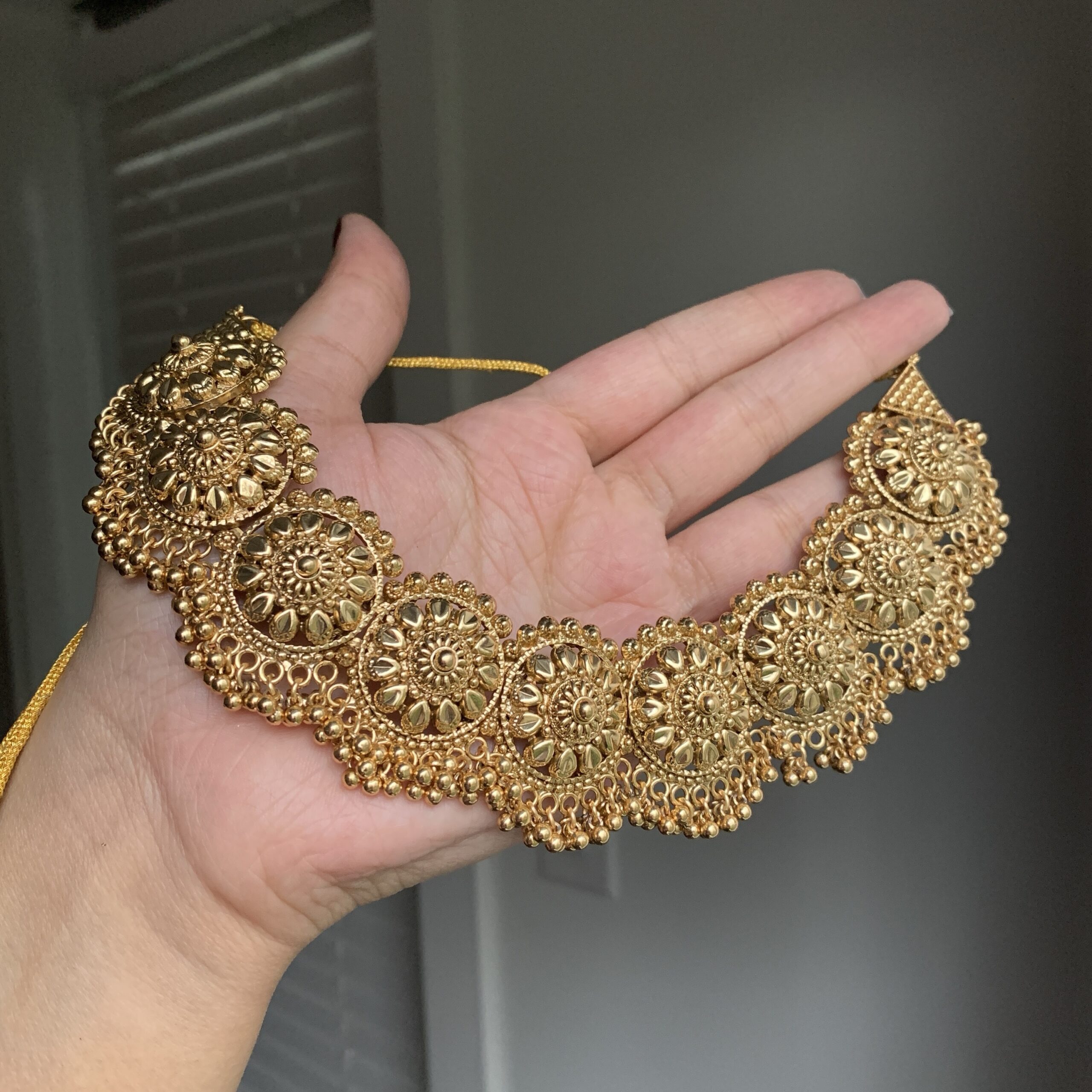 Accessories Handpieces Headband and Jhoomer Antique Gold Bridal