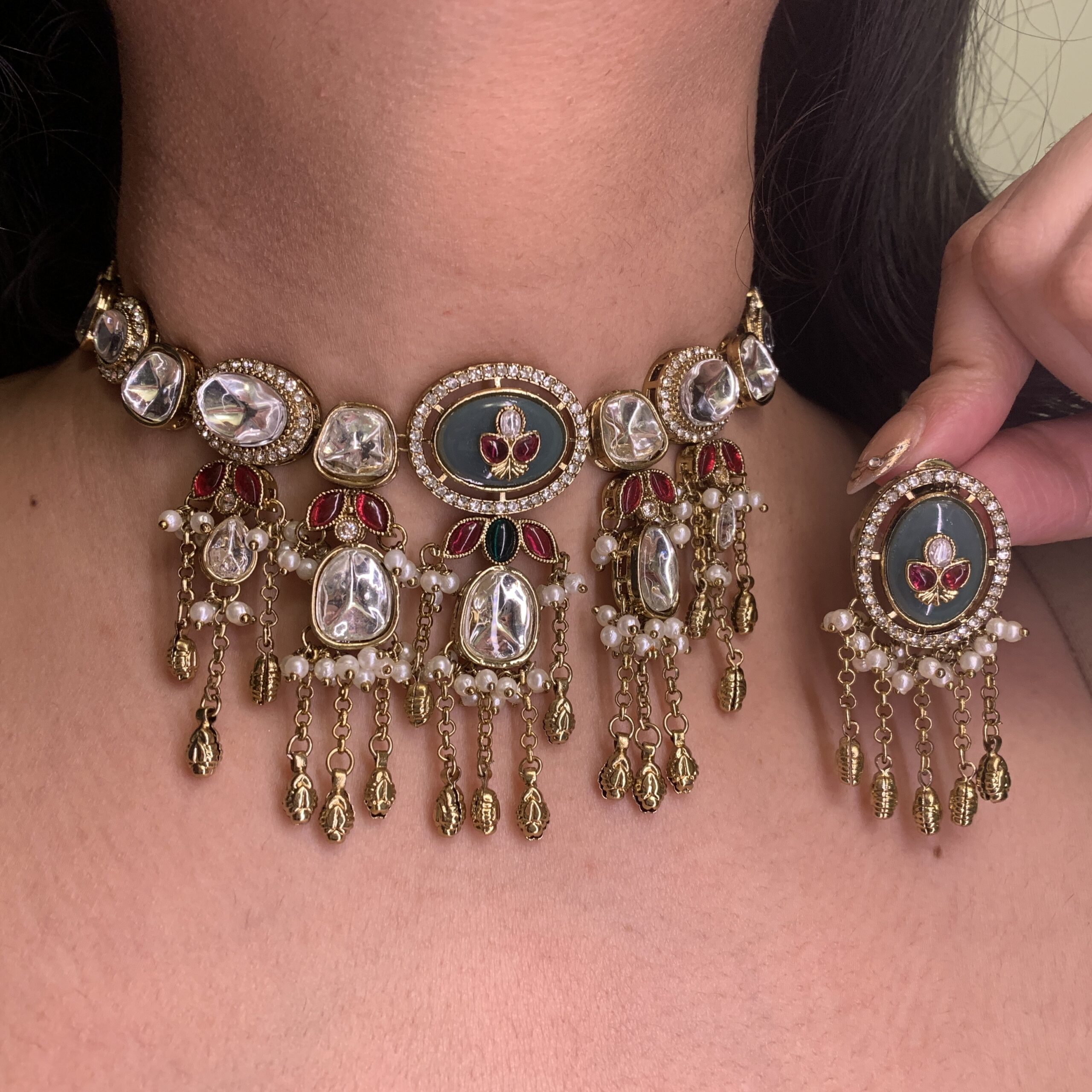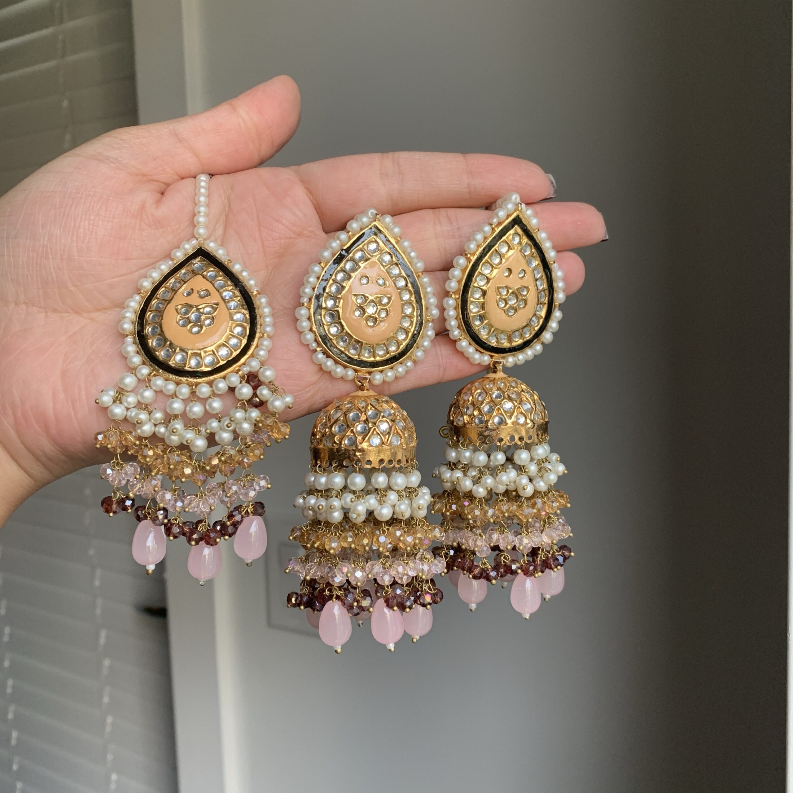 Earrings and Tikka Sets Antique Kundan Pakistani Statement