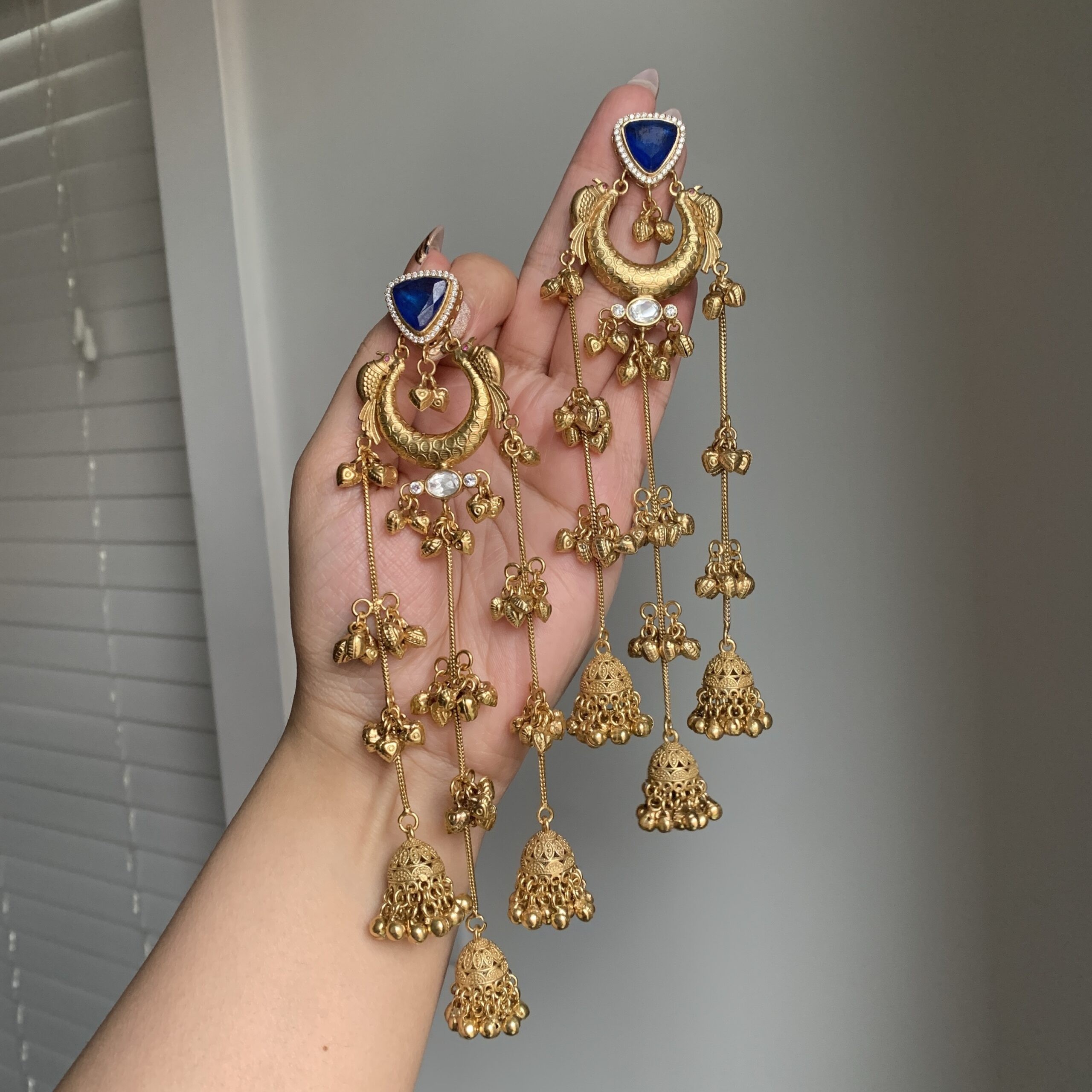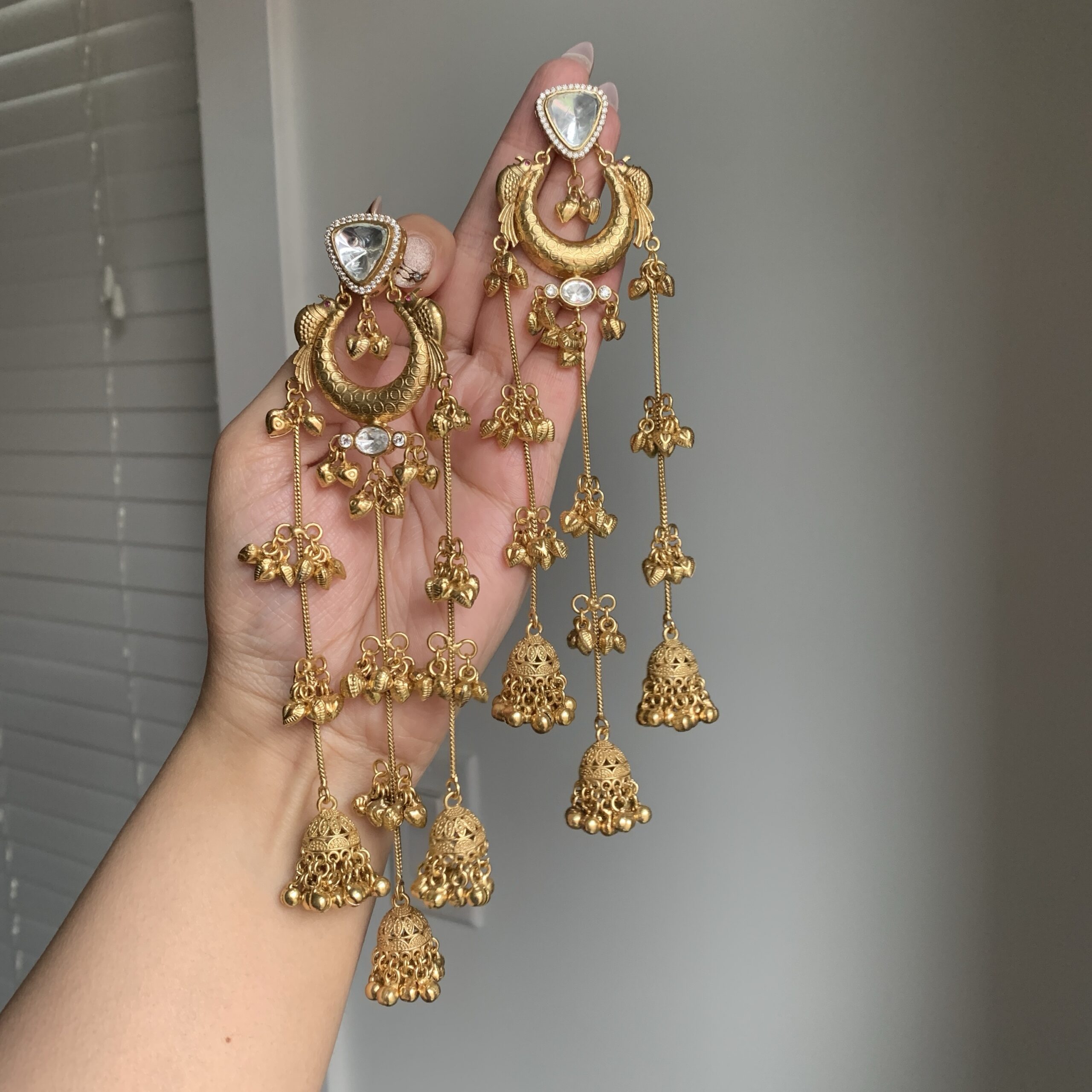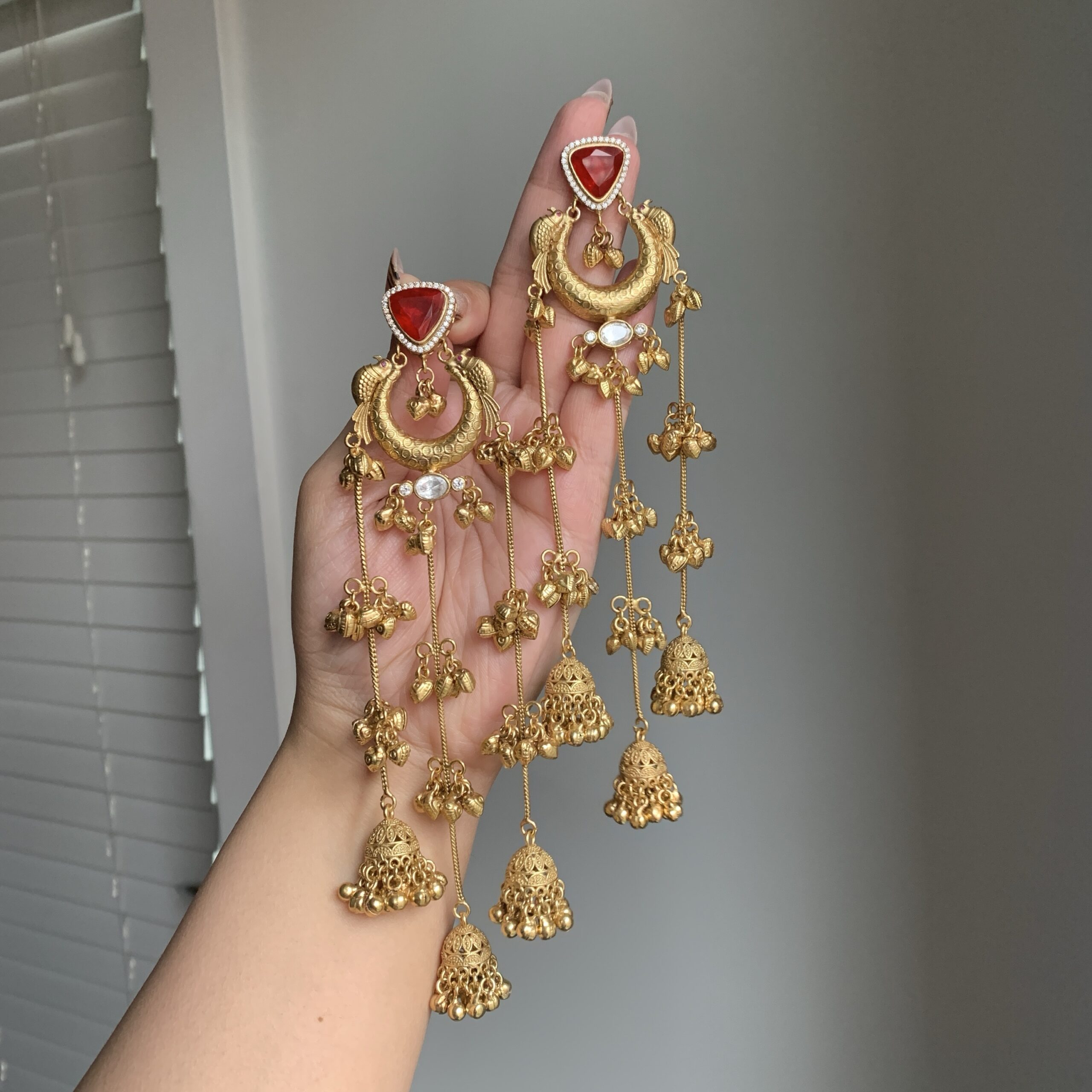 Crafted with ornate filigree work and classic kundan sparkle, this set highlights a statement centerpiece and rhythmic gold ghungroo-inspired detailing. The matching earrings complete the look with a rich, traditional finish made for celebrations and portraits.