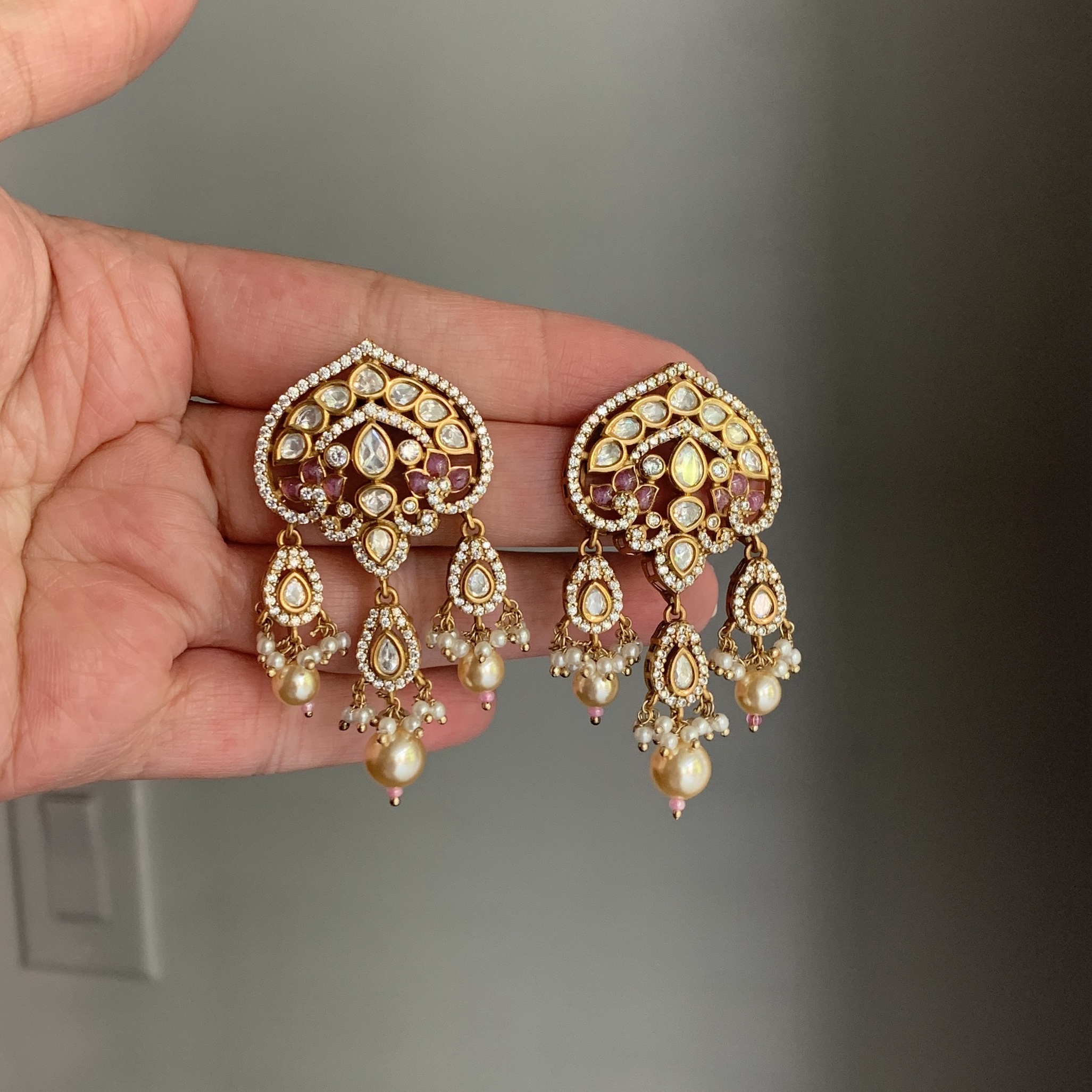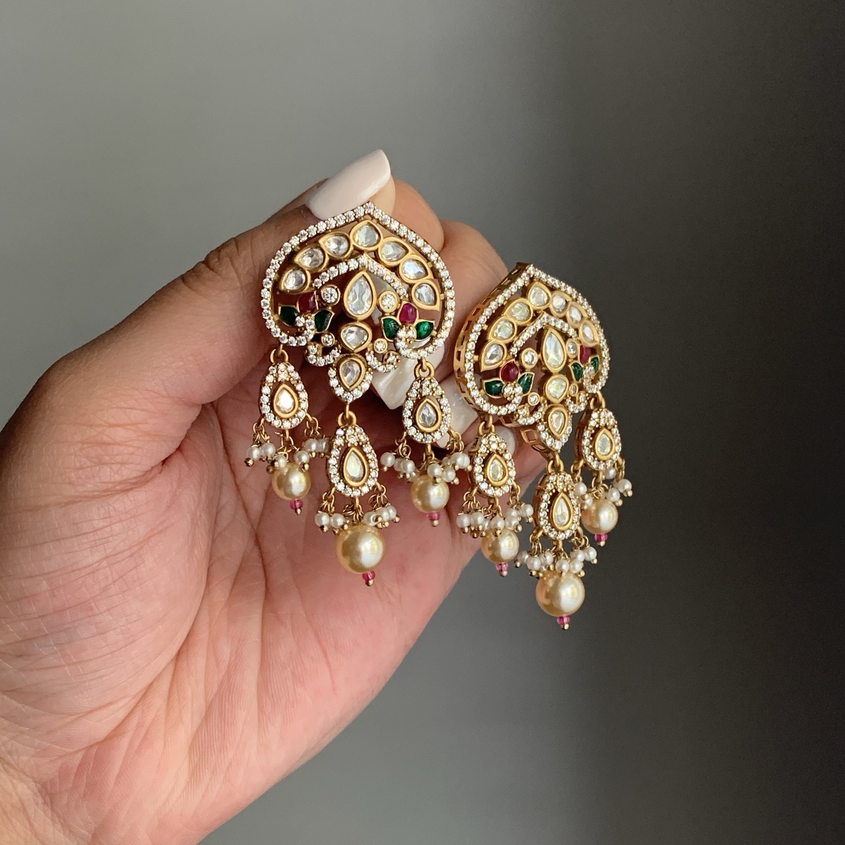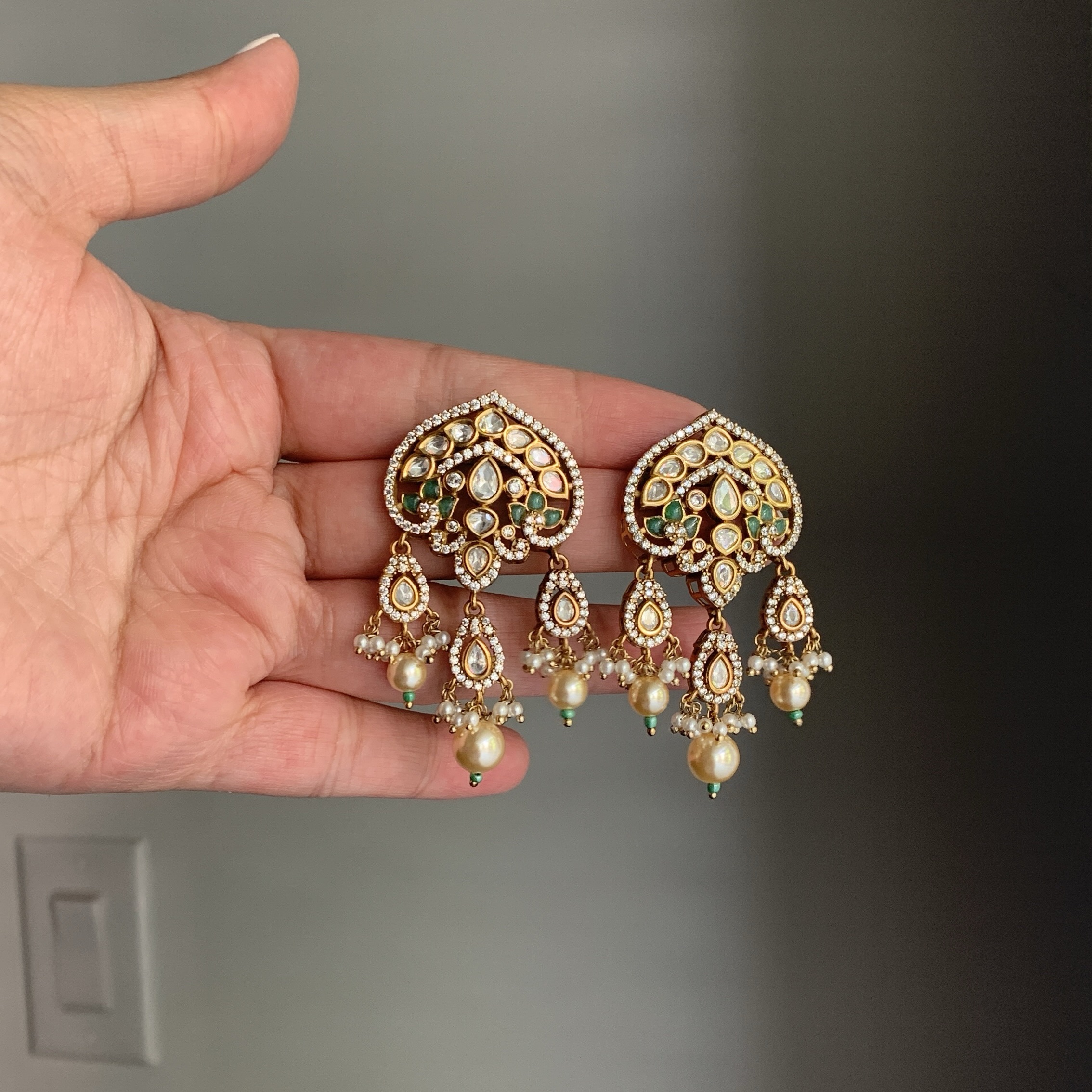 These earrings shine beautifully, adding a classic and elegant touch to any festive or wedding outfit.