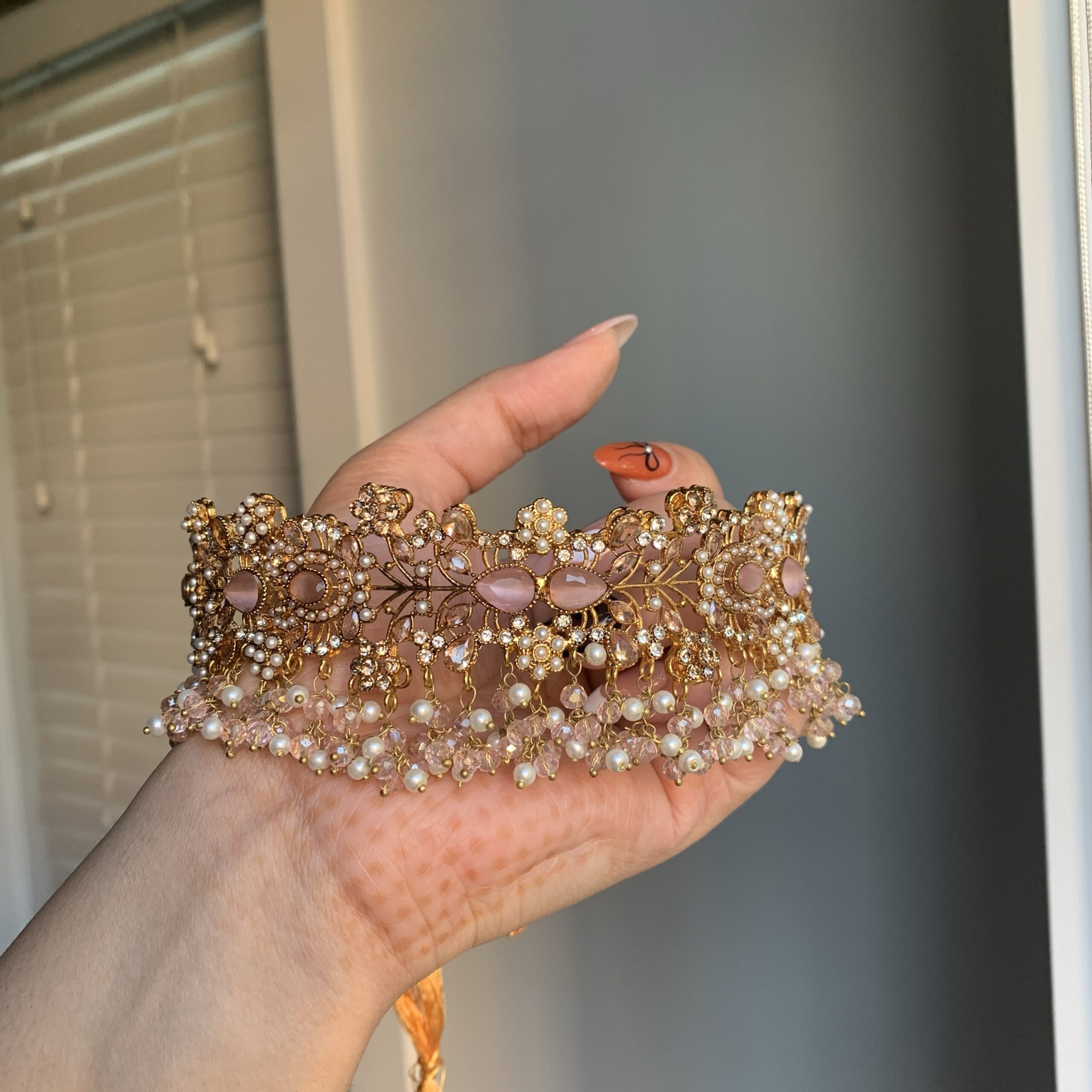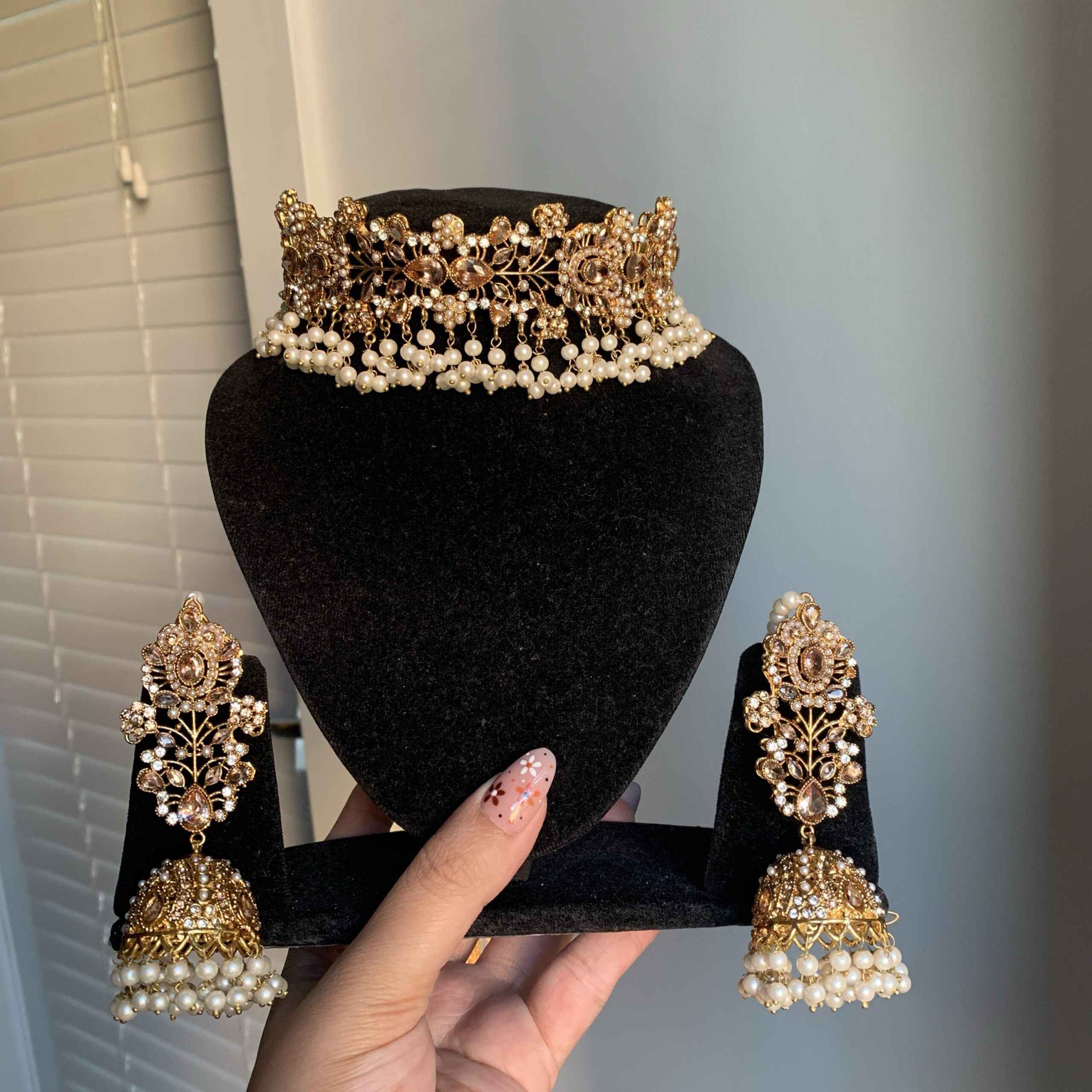 The Floral Symphony Set exudes an air of refined beauty, with its delicate floral patterns and pearl accents in a luxurious hues. Perfect for special occasions, this set combines traditional craftsmanship with a modern twist. With its matching earrings, it’s an elegant choice that ensures you look stunning from head to toe.